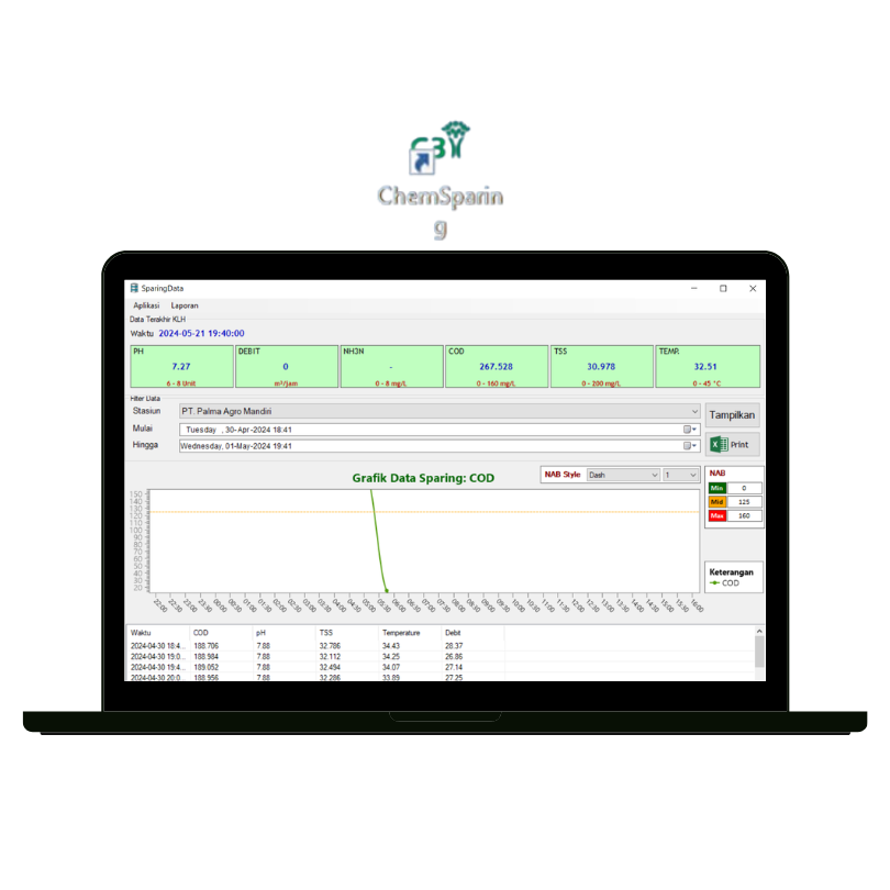 Ukuran jumlah oksigen yang diperlukan untuk mengoksidasi bahan organik dan anorganik dalam air. Ini mencerminkan tingkat polusi organik di dalam air, dengan nilai COD yang tinggi menunjukkan adanya sejumlah besar bahan organik yang dapat menyebabkan penurunan kualitas air dan kondisi anoksik yang berbahaya bagi organisme akuatik.