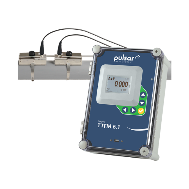 TTFM 6.1 sangat ideal untuk air bersih yang diolah, air mentah, air pendingin, bahan kimia, oli hidrolik, air dengan konduktivitas rendah, larutan air/glikol, serta minyak diesel dan bahan bakar. Unit ini bekerja dengan mengukur perbedaan waktu tempuh untuk pulsa suara ultrasonik yang dikirimkan dari satu transduser ke transduser lainnya. Waktu antara sinyal yang dikirim dan diterima diukur oleh meteran aliran.